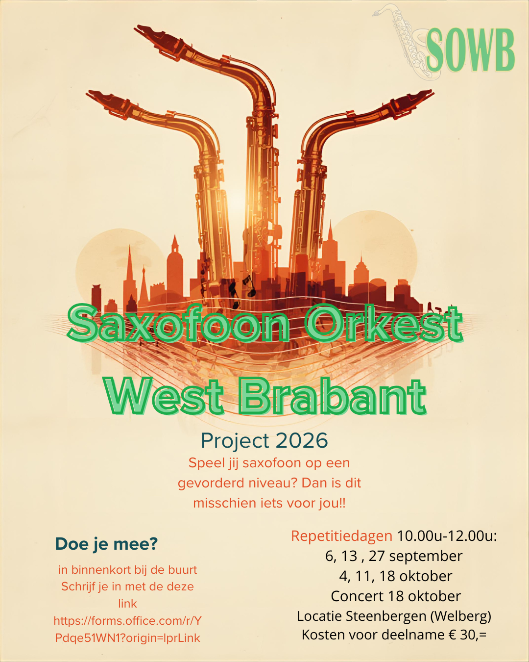 Wil je Saxofoon gaan spelen of misschien wel Klarinet? Wil je in een groep of individueel les ? Heb je al eerder saxofoon of klarinet gespeeld, en je wilt dit weer oppakken? Of .... zijn jullie een ensemble, kwartet ?